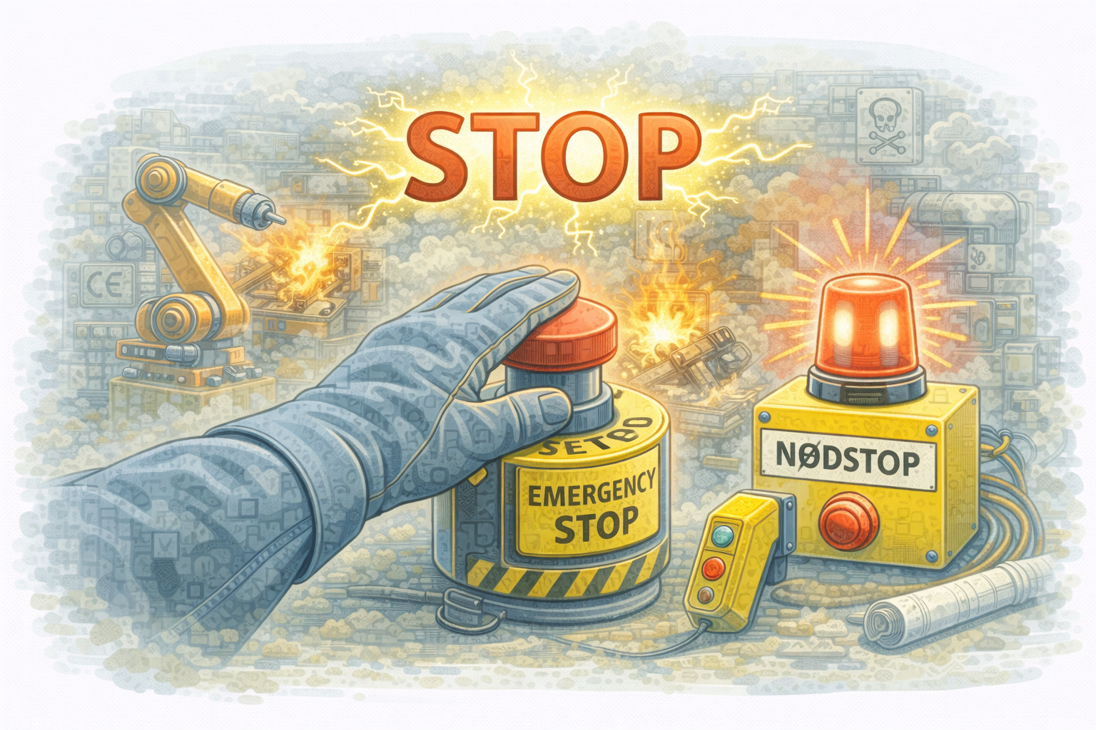 Manglende eller forkert implementering af nødstop udgør en væsentlig sikkerhedsrisiko og er et hyppigt fokusområde ved myndighedstilsyn og i forbindelse med arbejdsulykker. En utilstrækkelig nødstopfunktion kan medføre myndighedspåbud, driftsstop og ansvar ved hændelser.